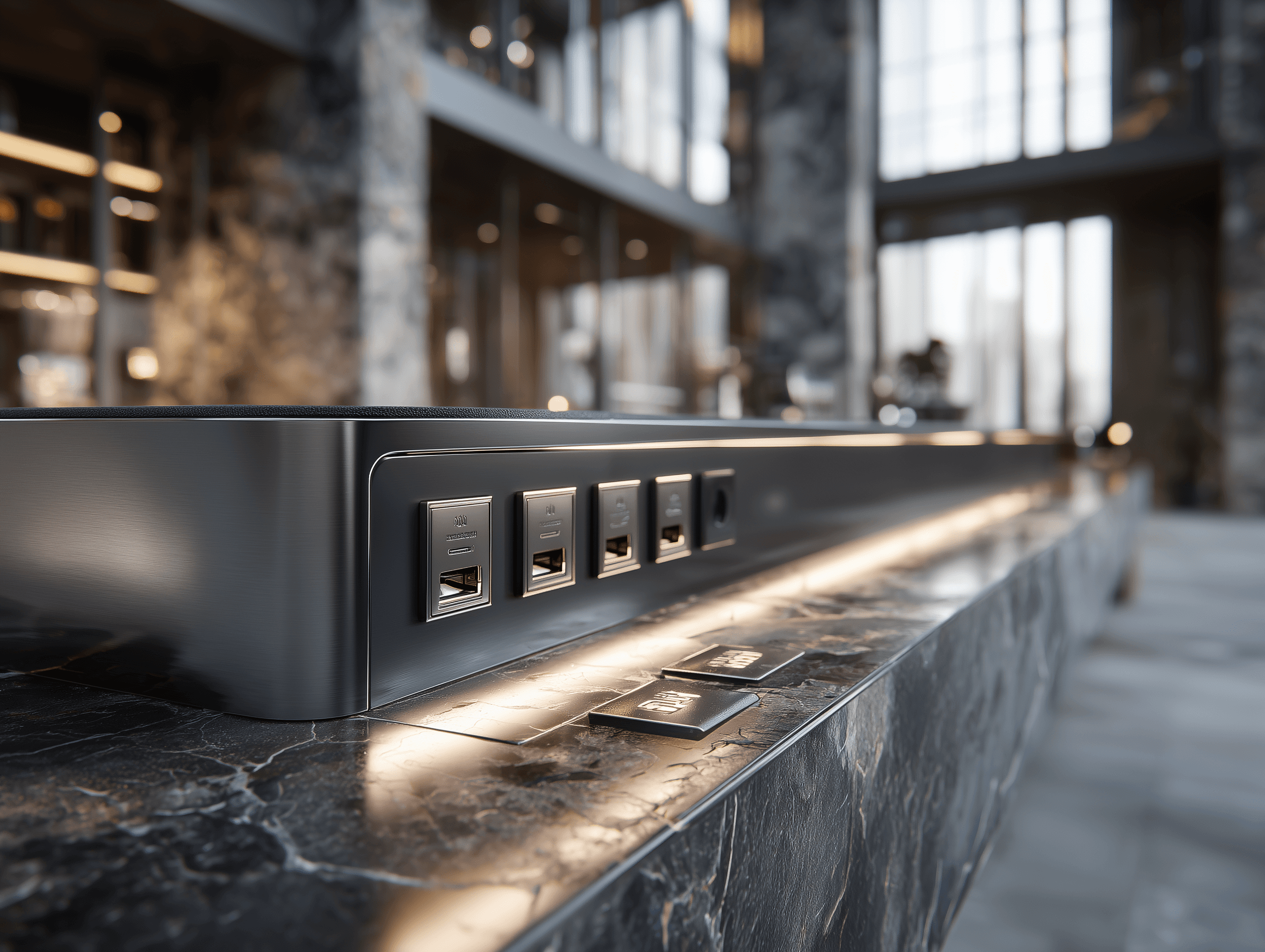 Материалы под задачи бренда: шпон и массив, HPL и пластики, МДФ/ЛДСП, камень, керамогранит, стекло, металл, акрил.