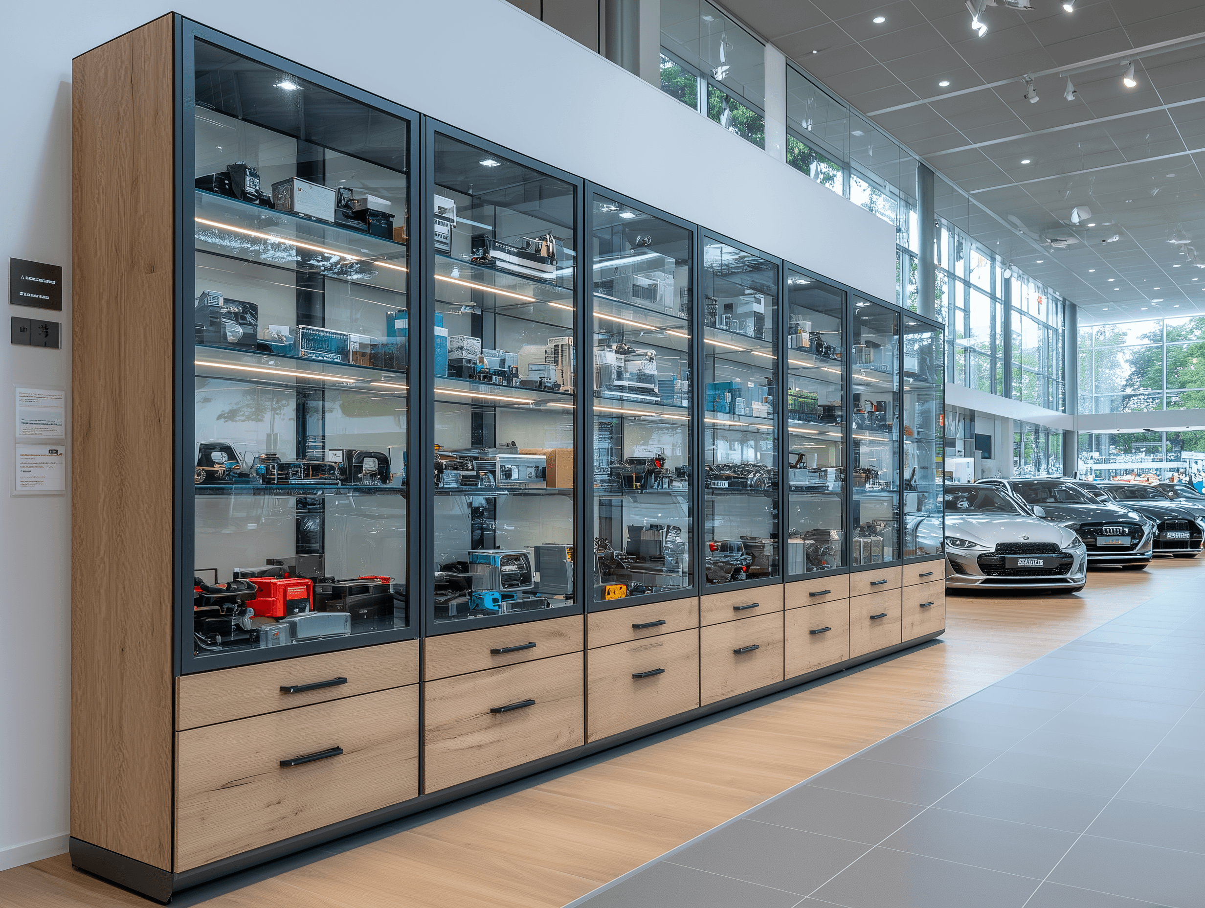 Оснащаем автосалоны мебелью и отделкой «под ключ»: ресепшн, клиентские зоны, переговорные, сервис-приёмка, склад запчастей. Работаем по брендбукам, выдерживаем линии дилера и требования импортёра. Проект, производство, логистика и монтаж в срок, без остановки процессов. Прочная фурнитура, износостойкие материалы, гарантия.